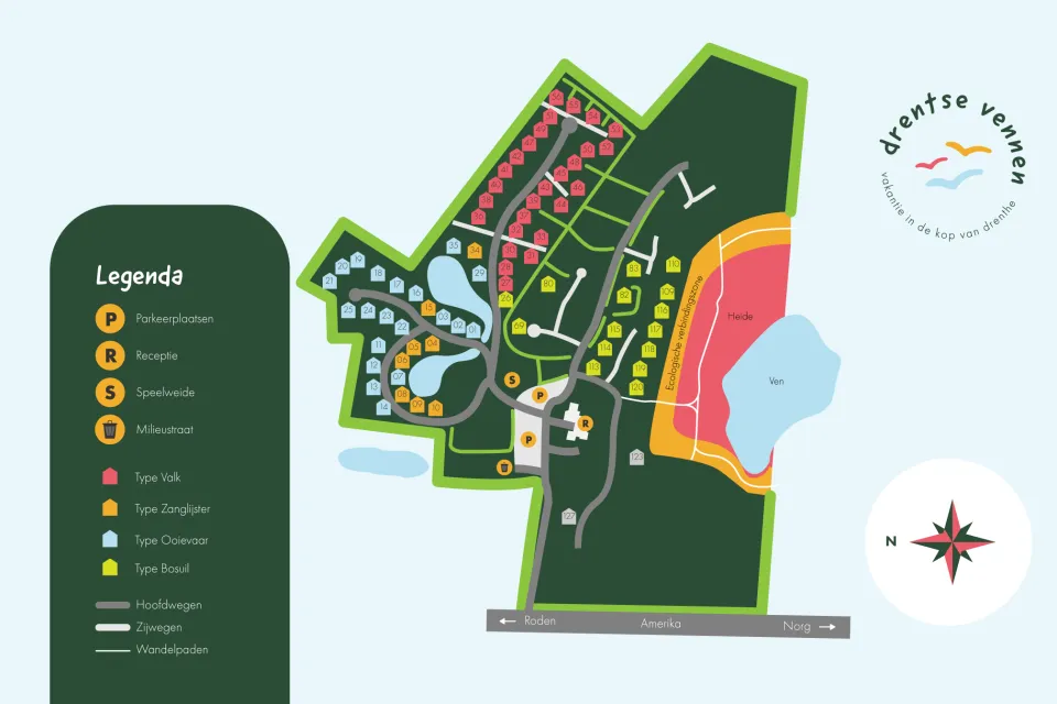 Möchtest du wissen, wo sich bestimmte Ferienhäuser befinden? Schau dir den Lageplan an, um einen Überblick über die Anordnung des Parks und den Standort deines Ferienhauses zu erhalten.