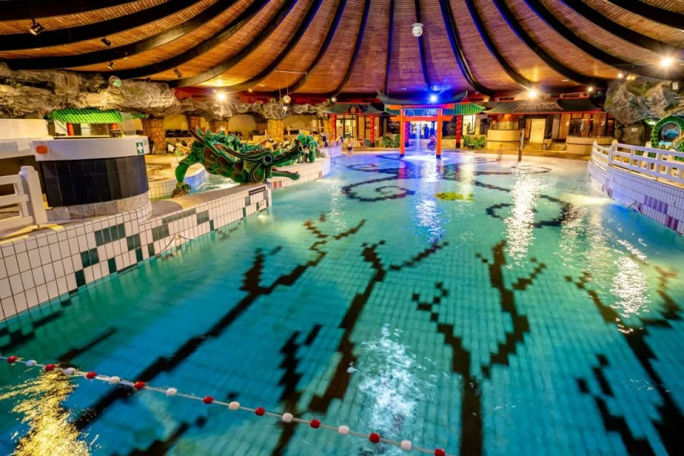 Außerdem findest du hier ein Schwimm-Schloss mit einem Innen- und Außenpool. Ein sehr schöner Ort, der weniger als 15 Minuten Fahrt entfernt ist.